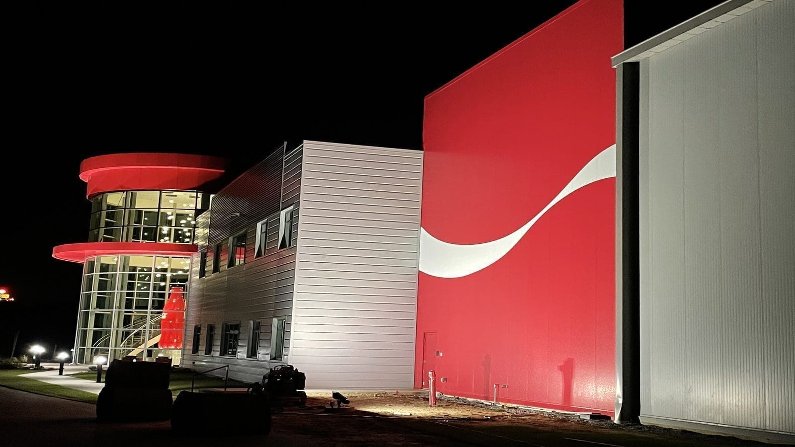It includes a warehouse, fleet shop, administrative offices, and meeting space for both Coca-Cola associates and customers.