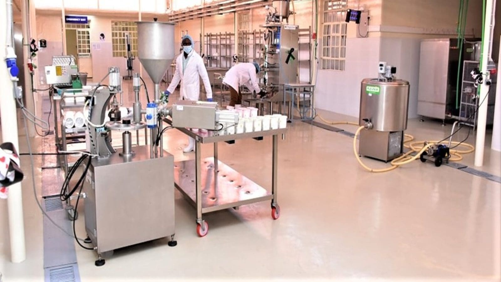 The milk plant in Nyeri National Polytechnic is currently used by the students to process yoghurt, cheese and milk and has the capacity to process about 1000 litres of milk after every hour.